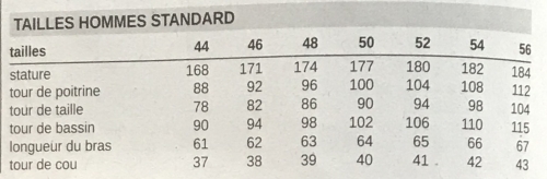 Taille de confection 50